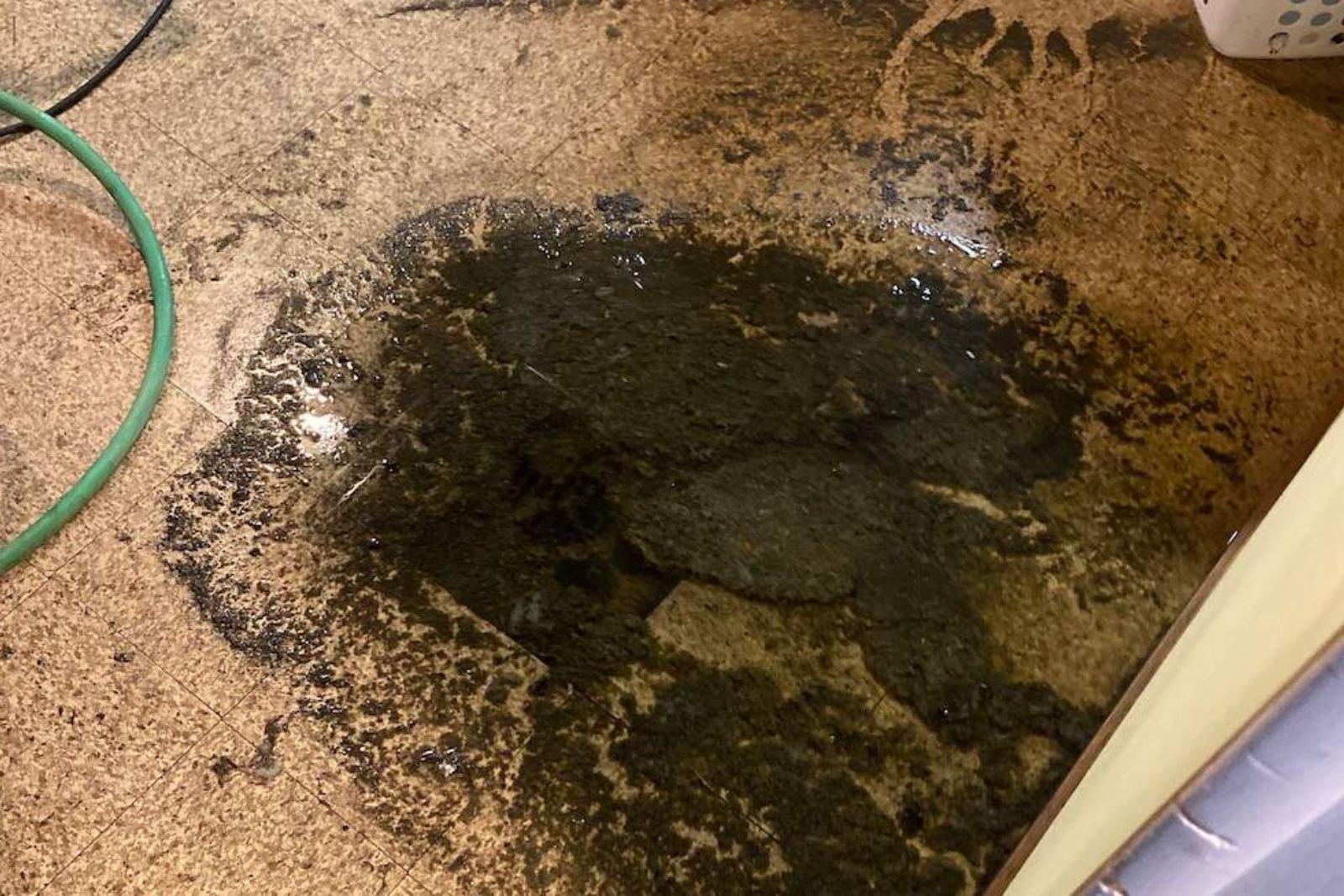 This water comes from a broken supply line or a sink. It is safe to touch and does not smell bad.