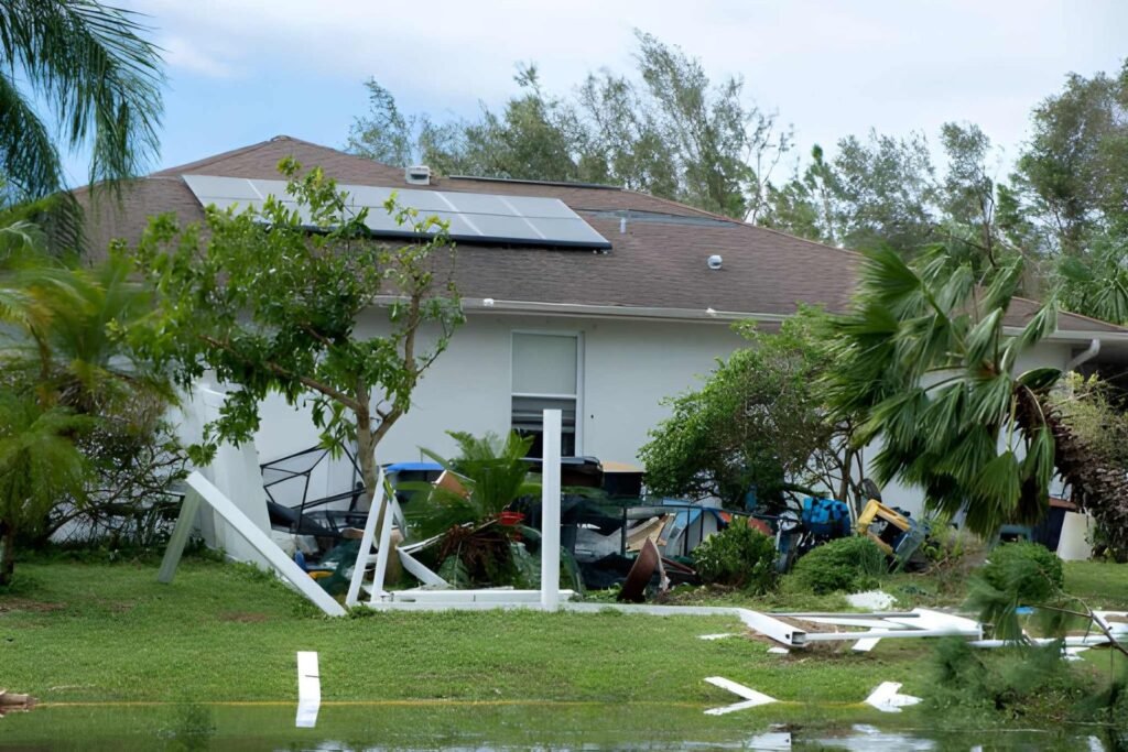 Heavy rain can break windows or ruin roofs. We board up openings and dry the interior to prevent further rot damage.